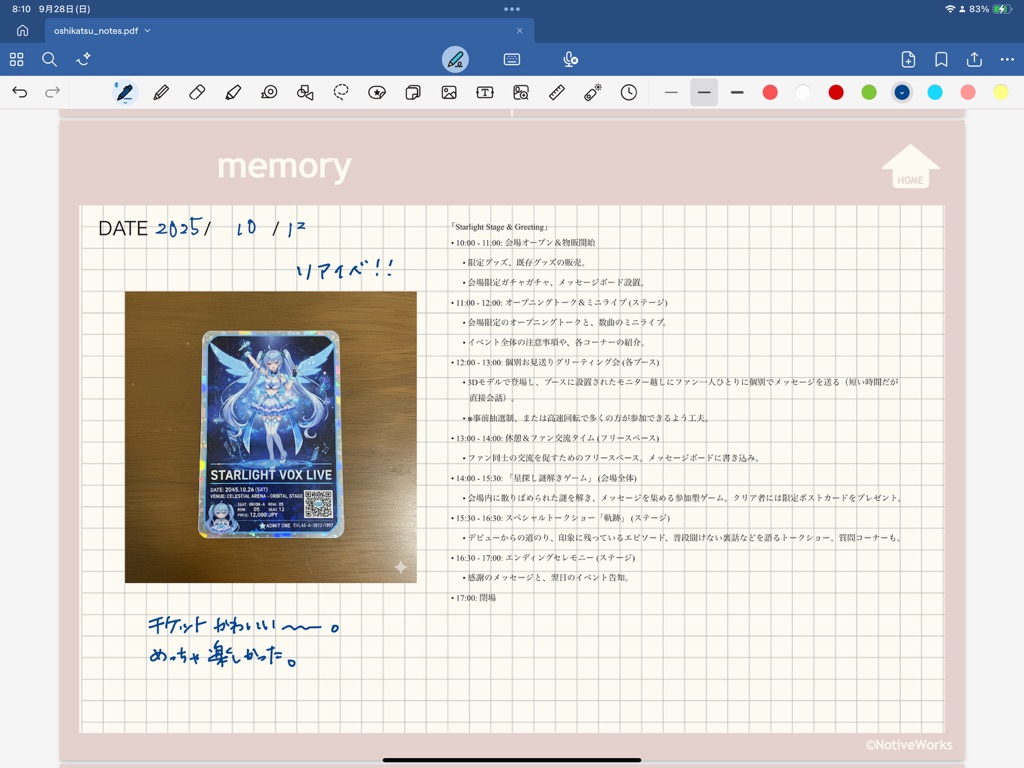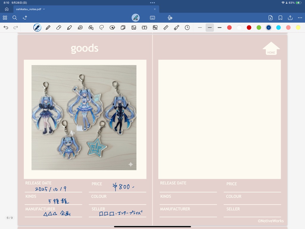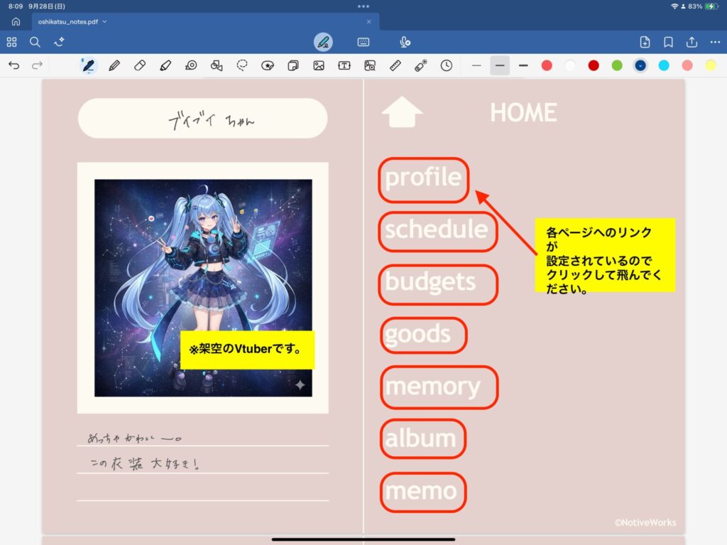 iPadなどのデジタルノートに読み込んで使える推し活ノートテンプレート(PDF)を作りました。